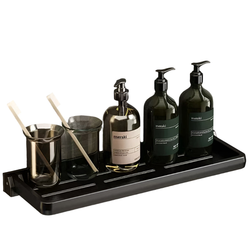 Das Duschablage Schwarz trotzt der Feuchtigkeit mit einem durchdachten Design und einer langlebigen Aluminiumstruktur. Eine minimalistische, aber hochfunktionale Ablage, die jedem Pflegeprodukt seinen festen Platz bietet. Das Wasser fließt mühelos durch die präzise integrierten Schlitze ab, sodass sich keine Feuchtigkeit ansammelt – alles bleibt trocken und sofort griffbereit.