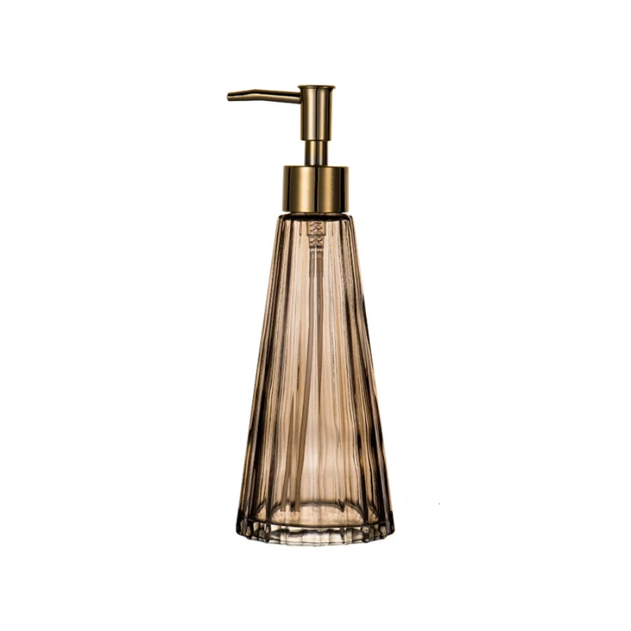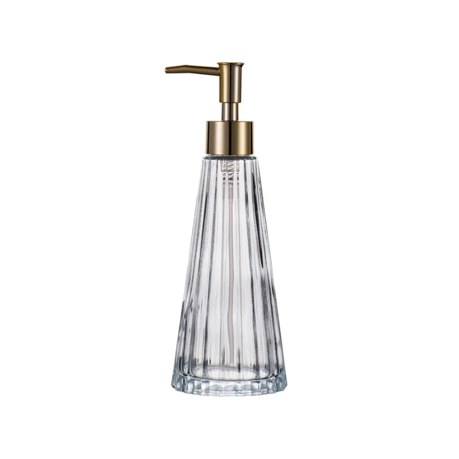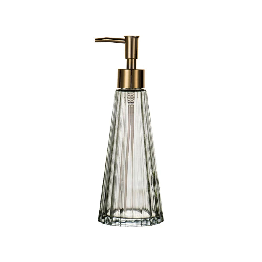 Der goldene Pumpkopf mit feinster Verarbeitung sorgt für eine reibungslose und präzise Dosierung. Die Kombination aus strukturiertem Glas und Metall schafft eine zeitlose Ästhetik, die sowohl in moderne als auch in klassische Einrichtungsstile passt. Ein funktionales Accessoire, das mit seiner subtilen Eleganz beeindruckt.