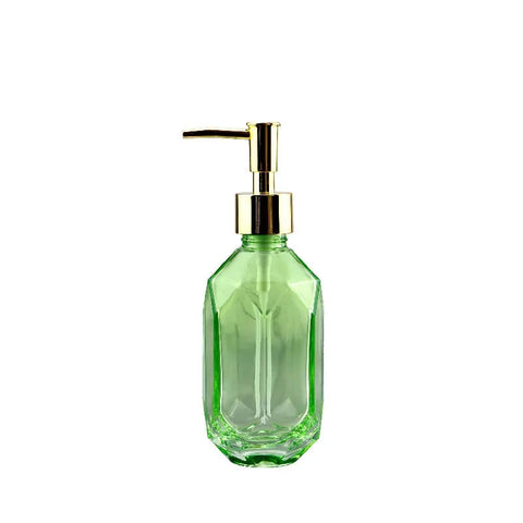 Der Seifenspender Glas Grün verfügt über eine elegante goldene Pumpe, die das Design perfekt abrundet. Ob Flüssigseife, Desinfektionsmittel oder Lotion – dieser Seifenspender vereint Funktionalität mit Ästhetik und wird zum dekorativen Highlight in Ihrem Badezimmer oder Ihrer Küche.